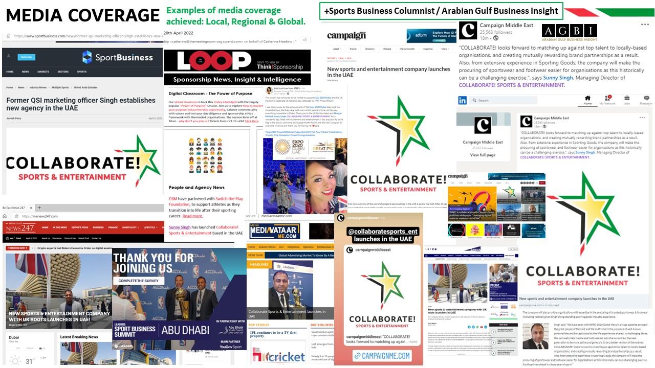 - Creating Brand Partnerships is also an area of expertise for Collaborate! The Founder’s local and international network and experience of working in partnership with leading sports and entertainment personalities and events, provides an opportunity for brands or events to partner with personalities either locally or internationally sourced, to help support brand campaigns and events, adding relevance, awareness and engagement.
